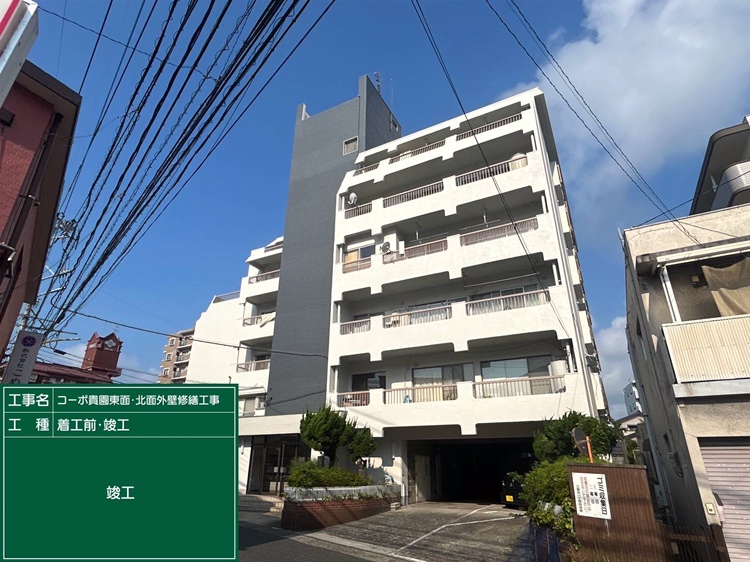 コーポ貴園は近隣にはJRやモノレール、都市高速もあるので交通の利便性に優れた位置に建つマンションです。おかげさまで修繕工事を工期内に無事完了することができました。居住者のみなさま、ありがとうございました。今後ともなにとぞよろしくお願いいたします!