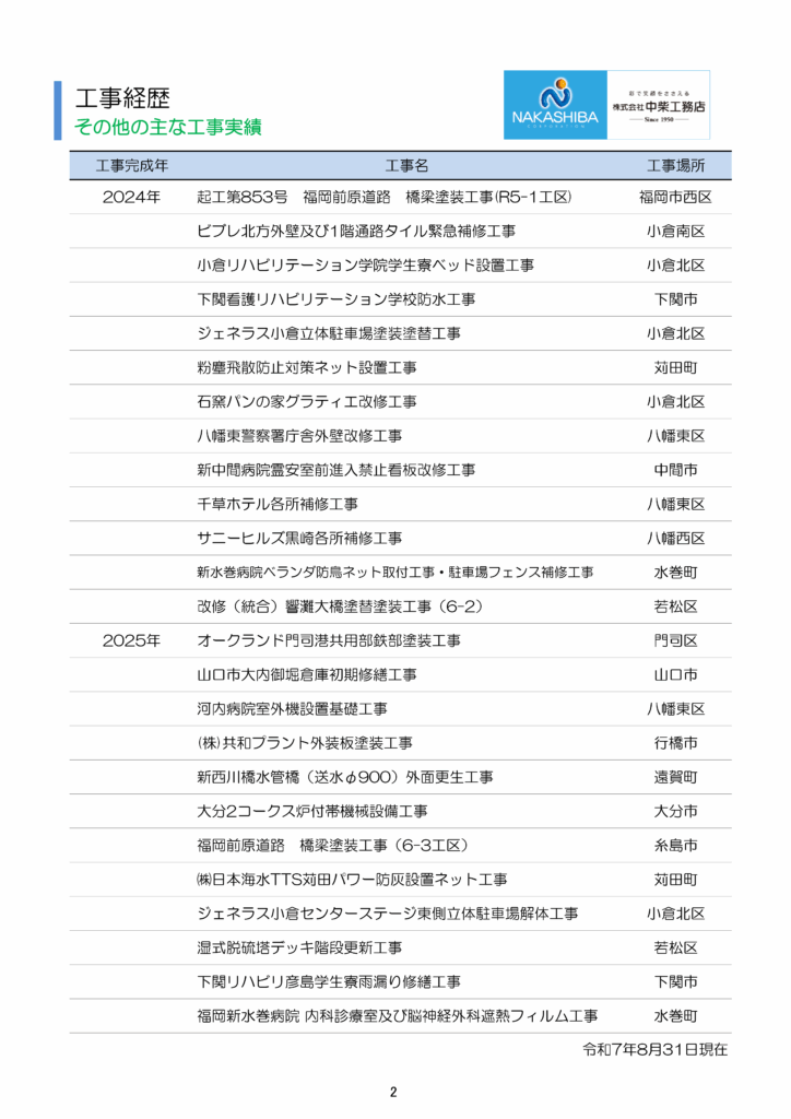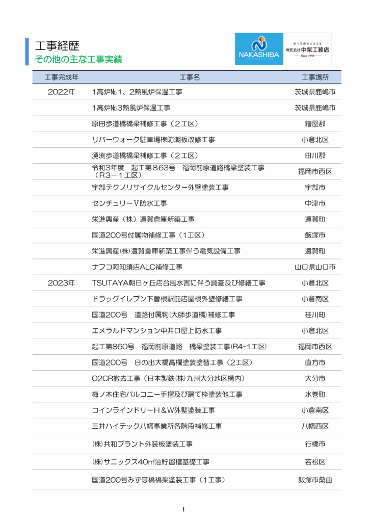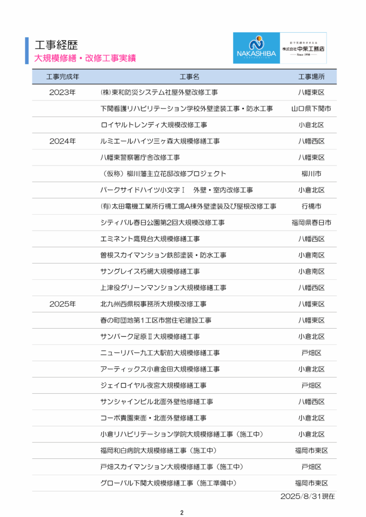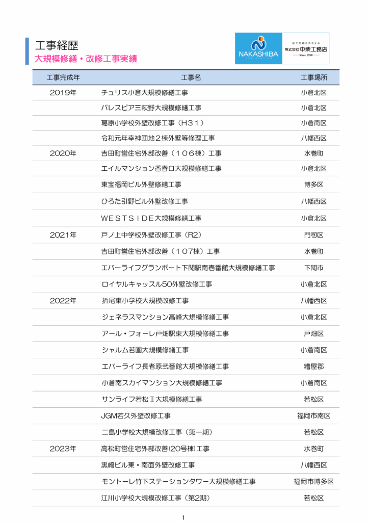 施工実績|福岡、北九州|大規模改修、修繕、塗装工事の中柴工務店